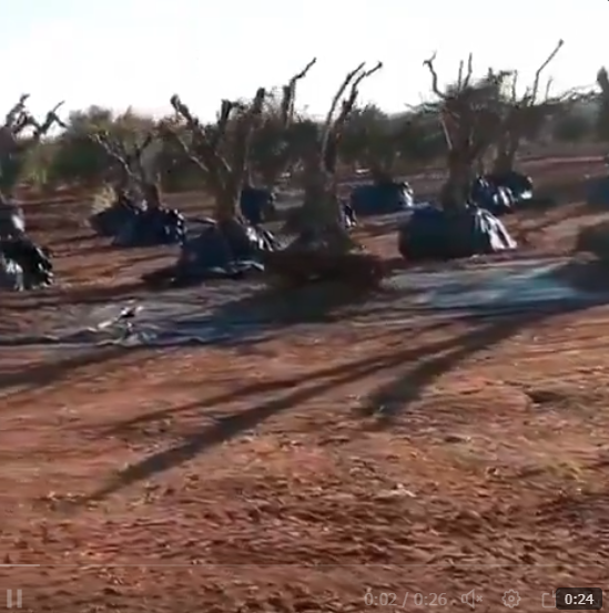 تداولت حسابات على منصة إكس مقطع فيديو يظهر أشجار زيتون بعد اقتلاعها من الأرض، وقالت إنها لعملية نقلها إلى تركيا بعد اقتلاعها من مدينة عفرين شمال غرب سوريا. منصة رادار